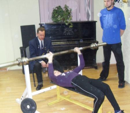 Маленькая Валентина Малакей (ПНИ-10) весит всего 48 кг. Валя показала лучший результат в жиме штанги: 28 раз! |