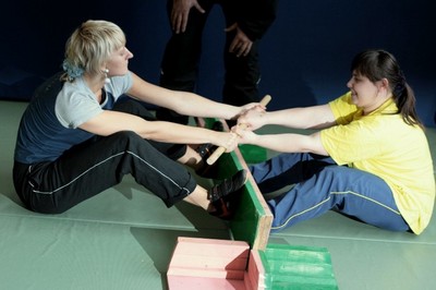 Маша Рылёва борется с незрячей спортсменкой Светой Паршаковой
