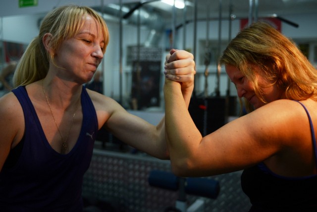 Совместная любительская фотосессия не обошлась без единоборств. Настя и Ярослава попробовали силы в борьбе на руках и легрестлинге.